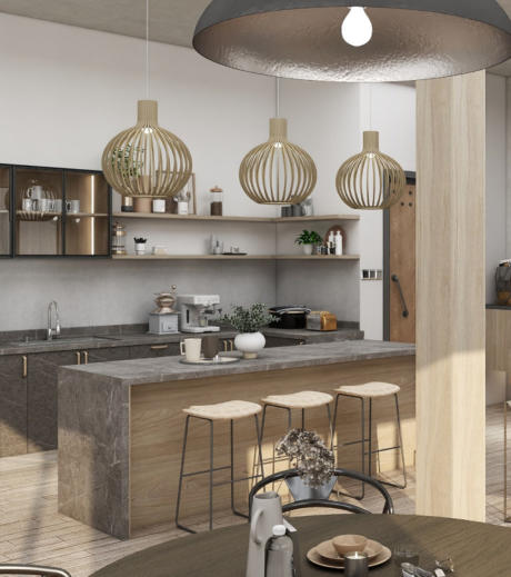 more than simply a modern kitchen. The stools add a